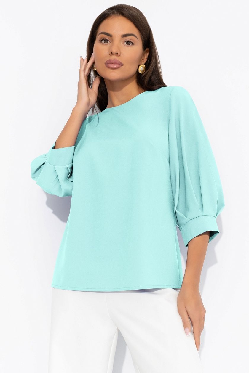 Блузка бирюзовая с рукавами три четверти от компании Charutti. Модель прямого силуэта, выполнена из плательного полотна "ниагара". Застегивается на деликатную пуговицу по спинке изделия. Блуза хорошо смотрится в заправленном виде и навыпуск. Прекрасное решение для создания стильного образа.