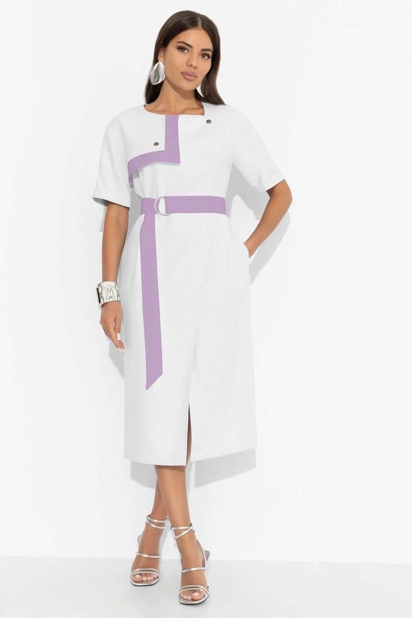 Платье белое в деловом стиле с поясом
