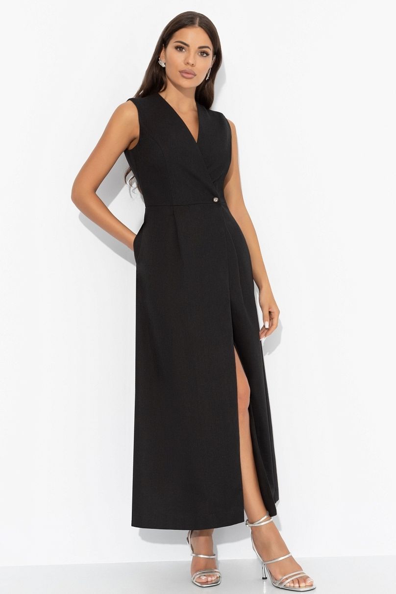 Платье чёрное льняное на запах
