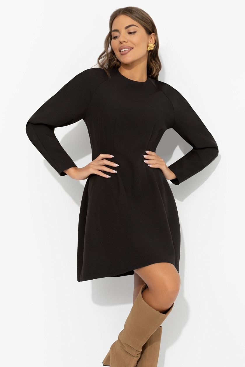 Платье чёрное приталенное с длинными рукавами от компании Charutti, выполнено из костюмного полотна "барби". Застёжка на скрытую молнию по спинке изделия. Это Ваш отличный образ, в котором вы всегда чувствуете себя уверенно.