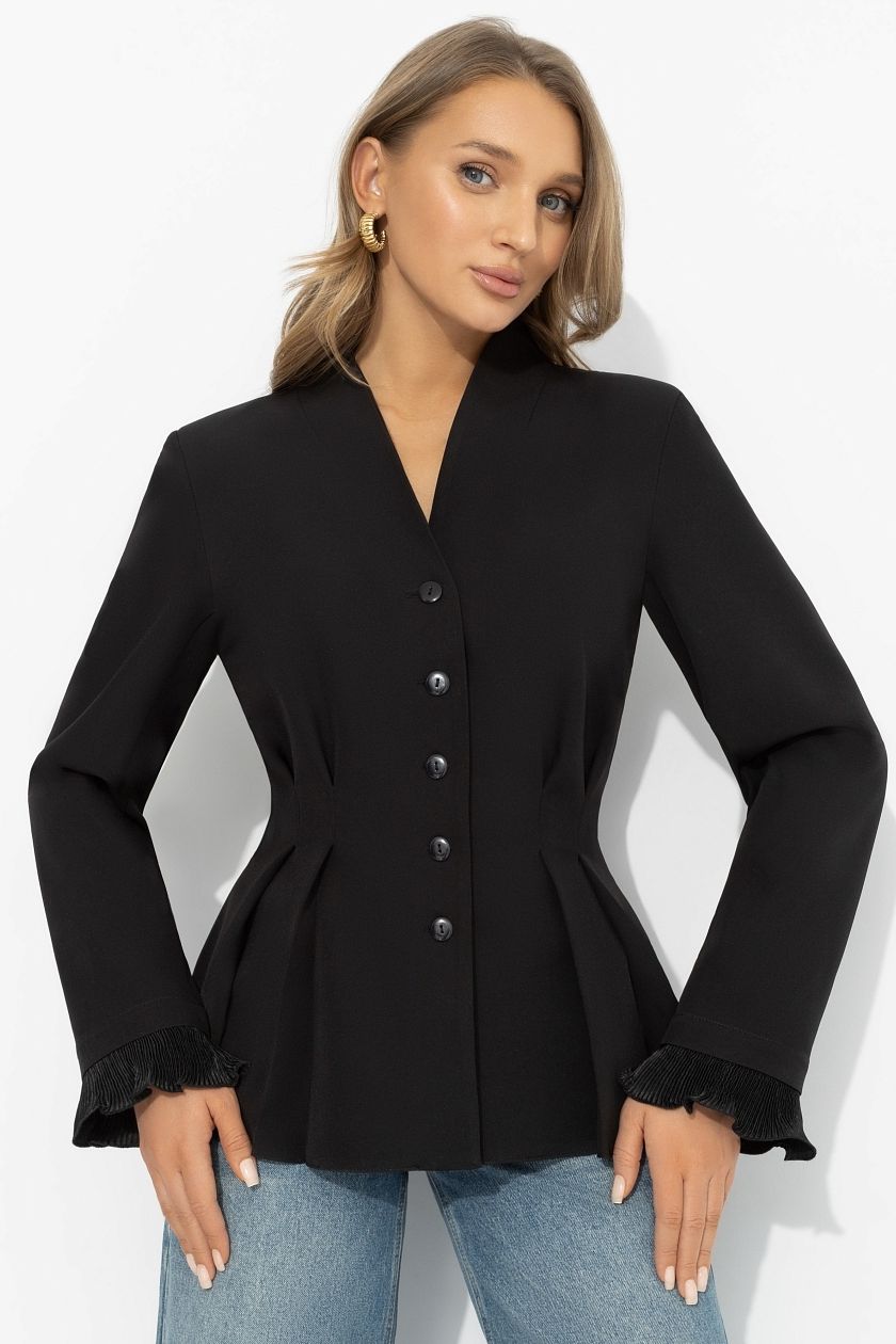 Блузка голубая офисная с оригинальной сборкой Люсинда, блю
