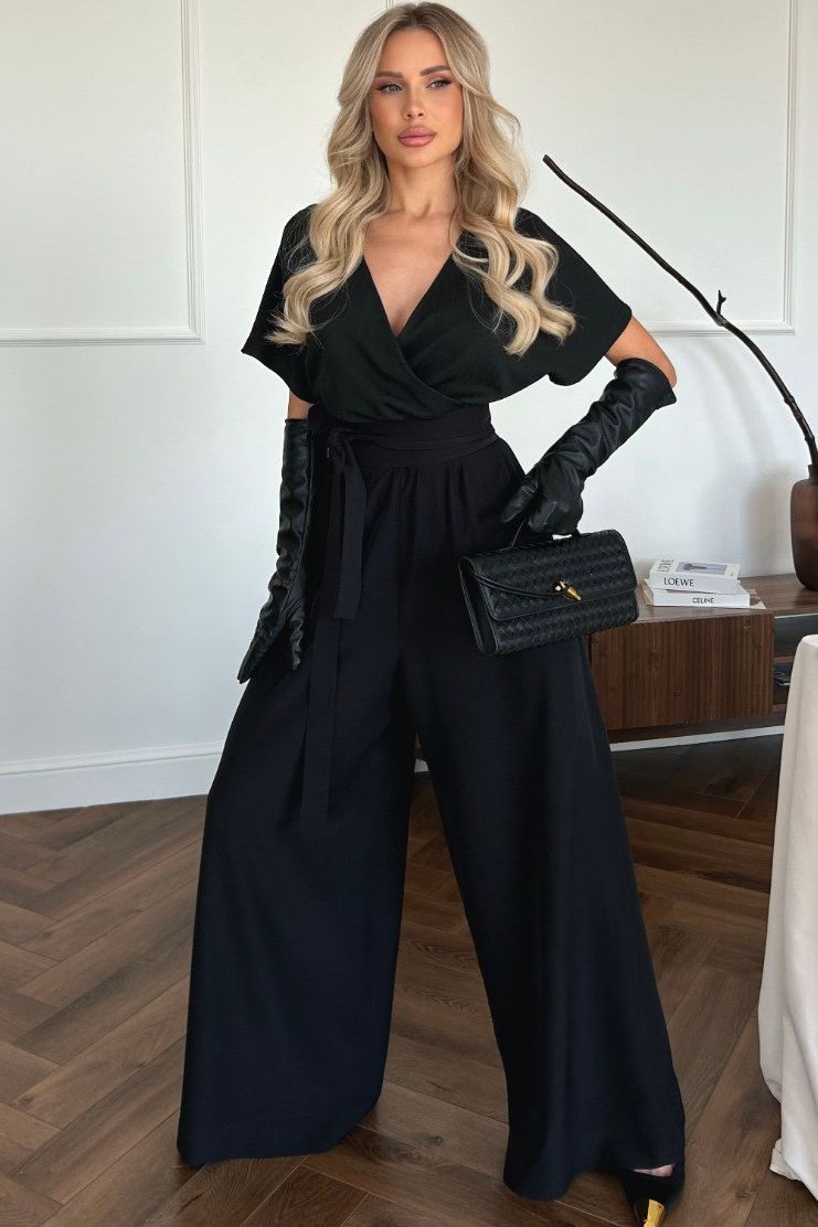 Комбинезон нарядный чёрный с поясом