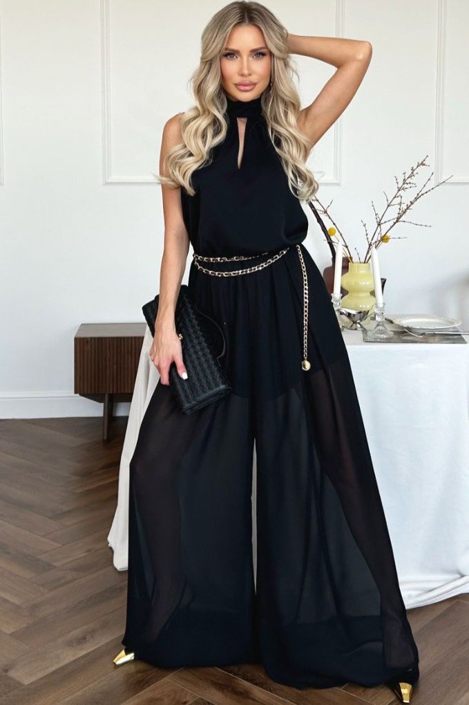 Комбинезон нарядный шифоновый чёрного цвета