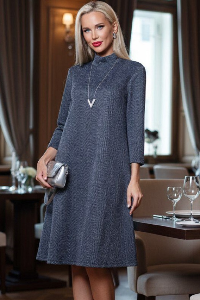 Платье-водолазка трикотажное синего цвета Особенно актуально, изящная