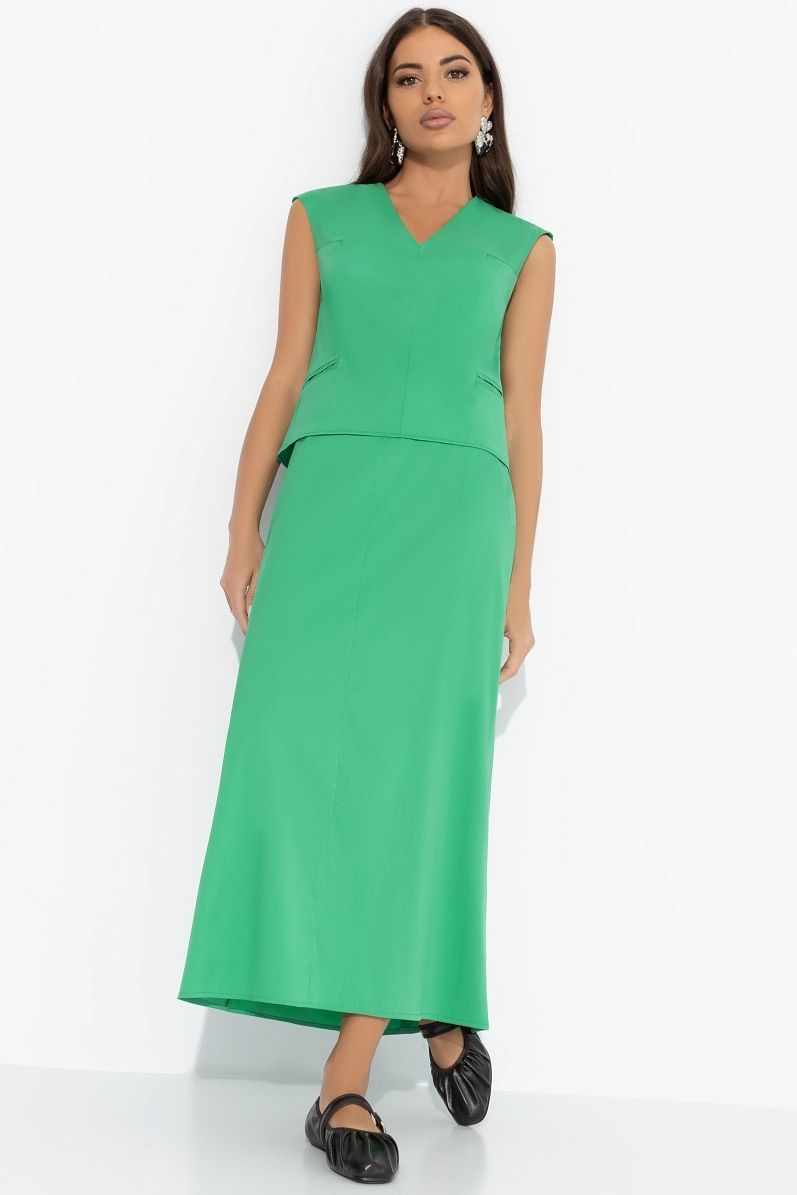 Платье трикотажное серо-голубого цвета с рукавом-фонарик Элси №2
