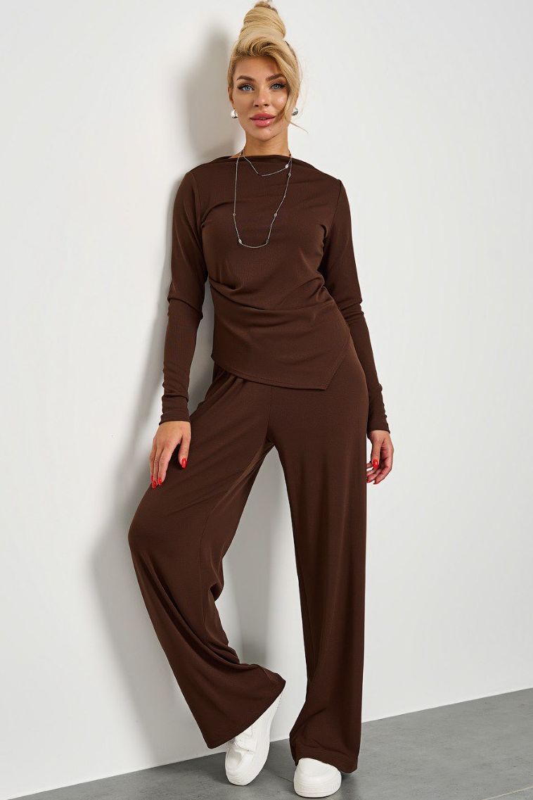 Брюки широкие трикотажные шоколадного цвета