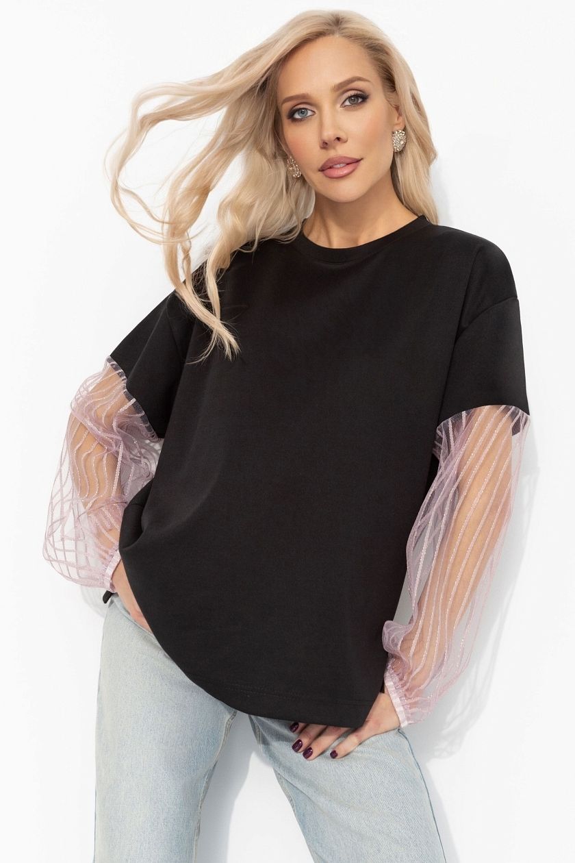Футболка чёрная с декоративными рукавами