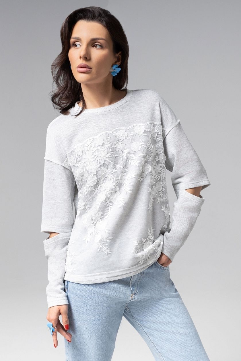 Лонгслив серый с разрезами на рукавах
