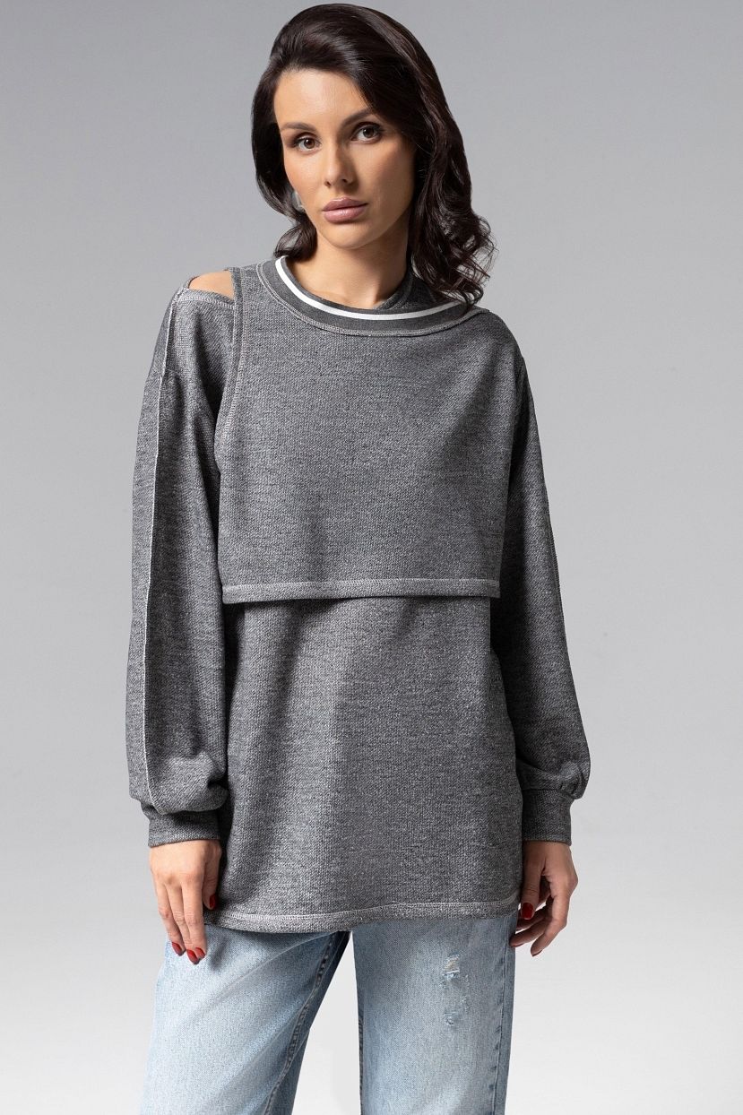 Лонгслив серый трикотажный многослойный