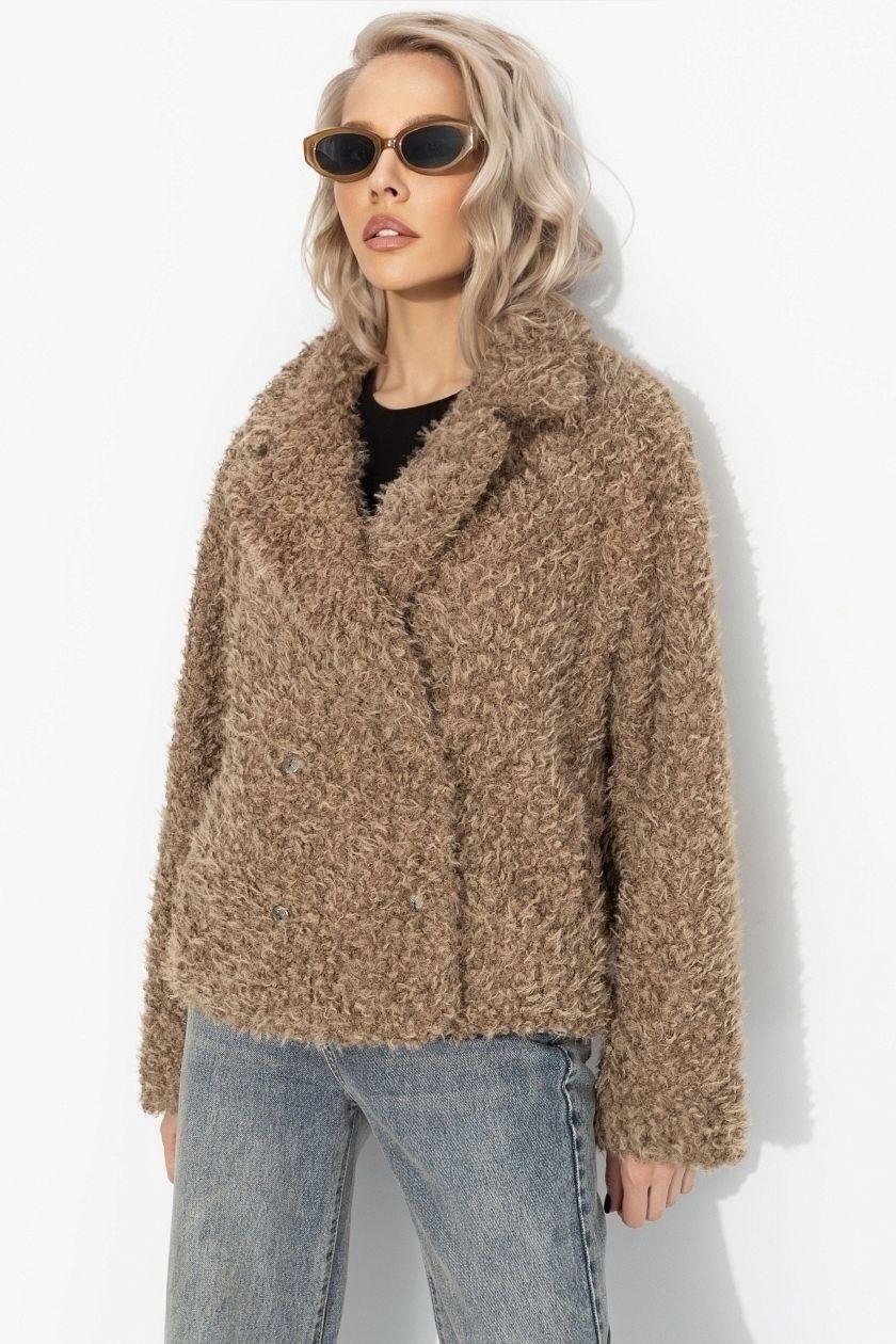 Полупальто бежевое с акцентным подкладом
