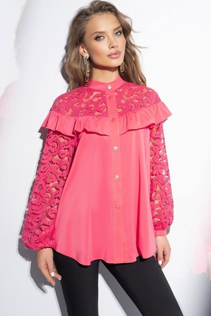 Рубашка ярко-розовая с рукавами из кружева