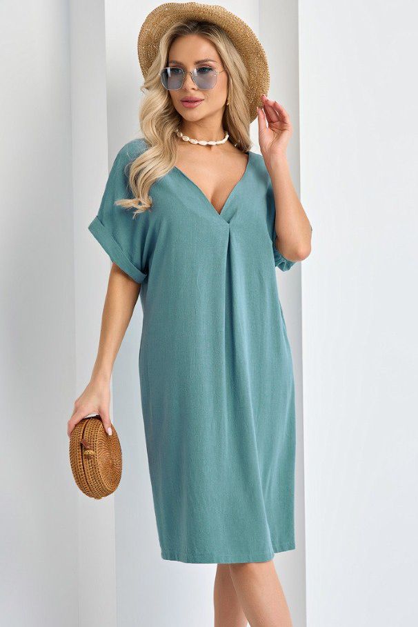 Платье льняное серо-голубого цвета от компании Jetty. Модель прямого кроя, V-образный вырез горловины по переду и спинке. Короткие цельнокроеные рукава с отворотами. Идеальный выбор для создания женственного образа. Ткань усадочная, садится после стрики, степень усадки заложена при крое.